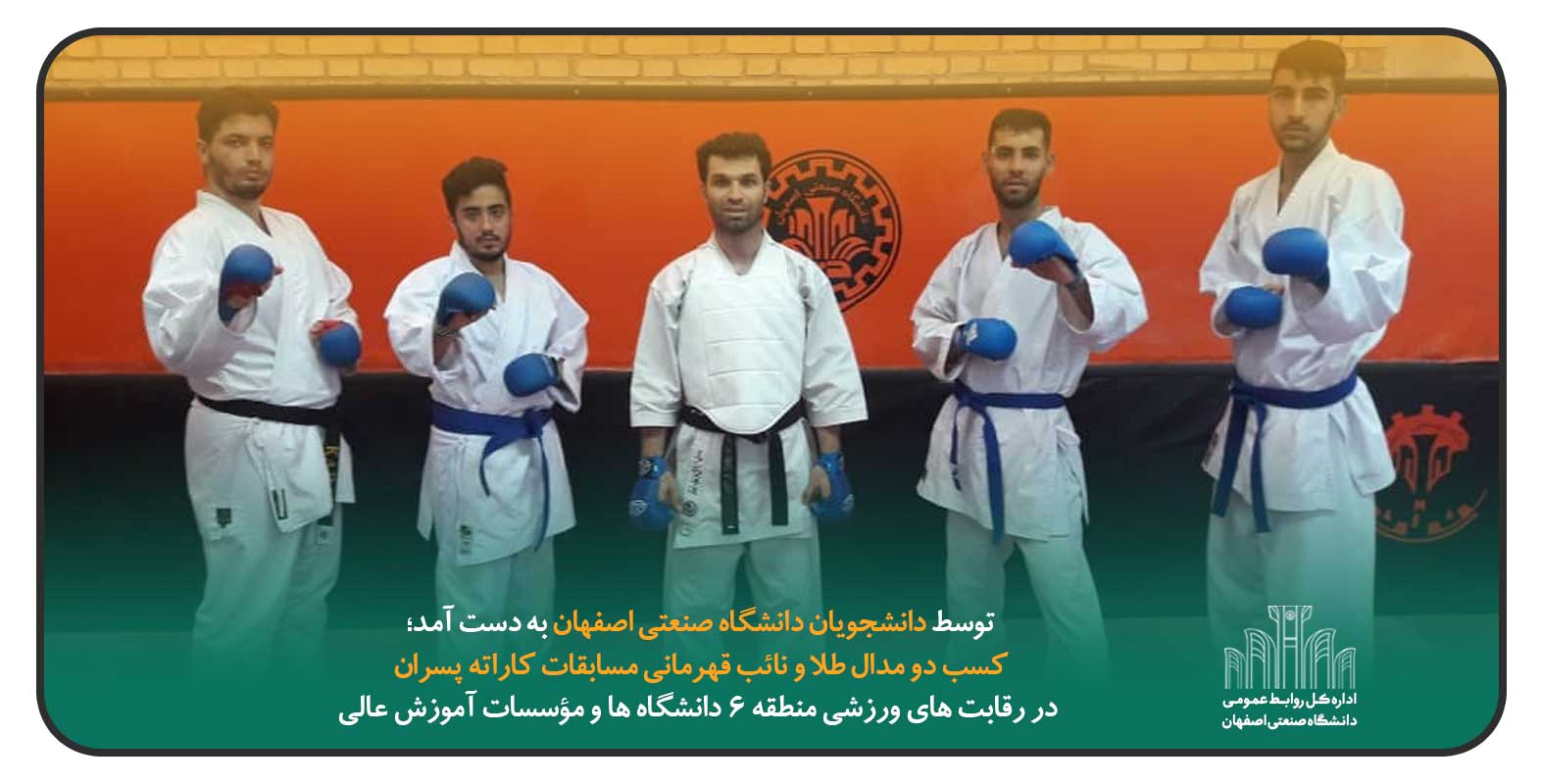 در مسابقات کاراته پسران از سری رقابت های ورزشی منطقه ۶ دانشگاه ها و مؤسسات آموزش عالی کشور، که روز جمعه ۶ خرداد ماه به میزبانی دانشگاه یزد برگزار شد، تیم کاراته دانشگاه صنعتی اصفهان موفق به کسب دو مدال طلا و نائب قهرمانی در بخش تیمی این مسابقات شد.
