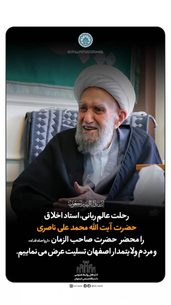 پيام تسليت دانشگاه صنعتي اصفهان در پي درگذشت عالم ربانی حضرت آیتالله العظمی ناصری