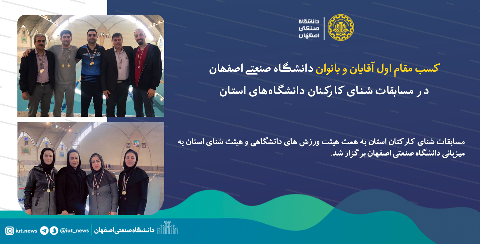 کسب مقام اول آقایان و بانوان دانشگاه صنعتی اصفهان در مسابقات شنای کارکنان دانشگاه‌های استان