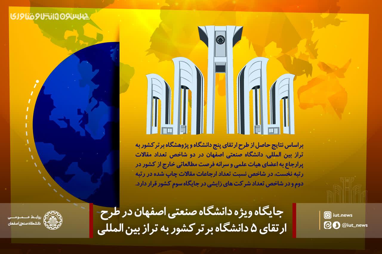 جایگاه ویژه دانشگاه صنعتی اصفهان در طرح ارتقای 5 دانشگاه برترکشور به تراز بین المللی