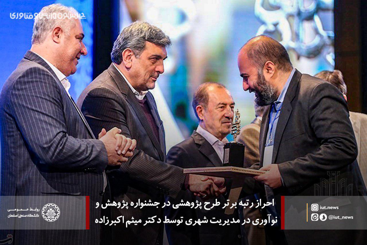 کسب عنوان برترجشنواره پژوهش و نوآوری در مدیریت شهری توسط عضو هیئت علمی دانشگاه صنعتی اصفهان